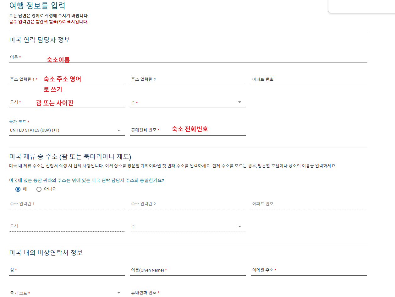 여행정보에는 숙소 이름과 숙소주소를 쓰는데 홈페이지 들어가서 그대로 보고 복사하거나 따라서 영어로 쓰시면 돼요.