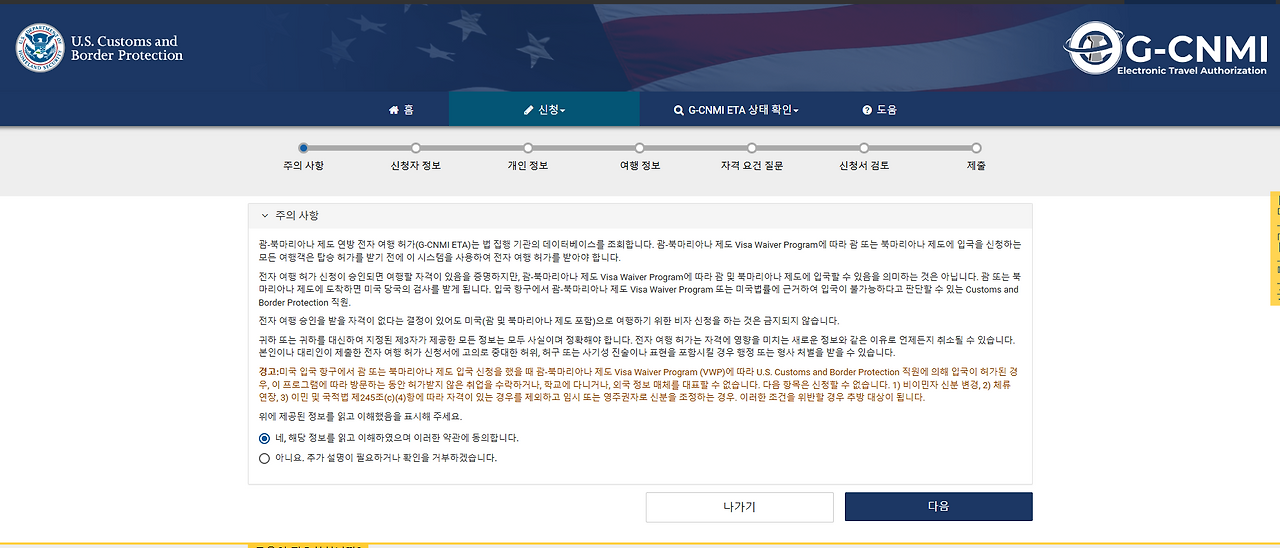 먼저 괌 비자신청 홈페이지를 들어갑니다