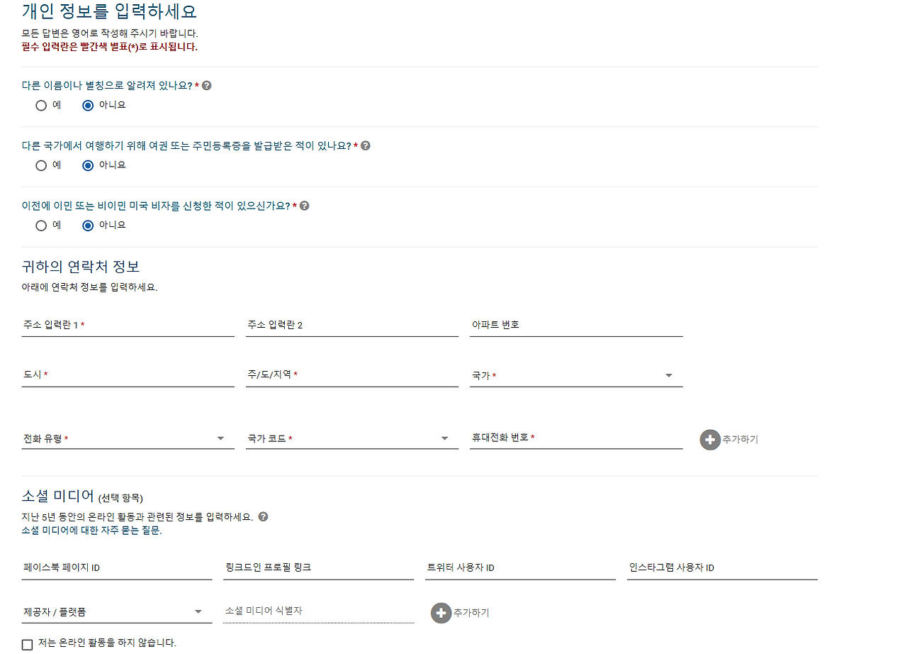 소셜 미디어는 선택항목이라 작성하지 않으셔도 돼요
