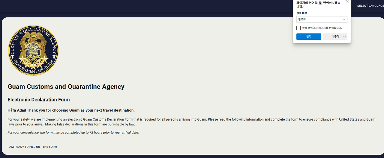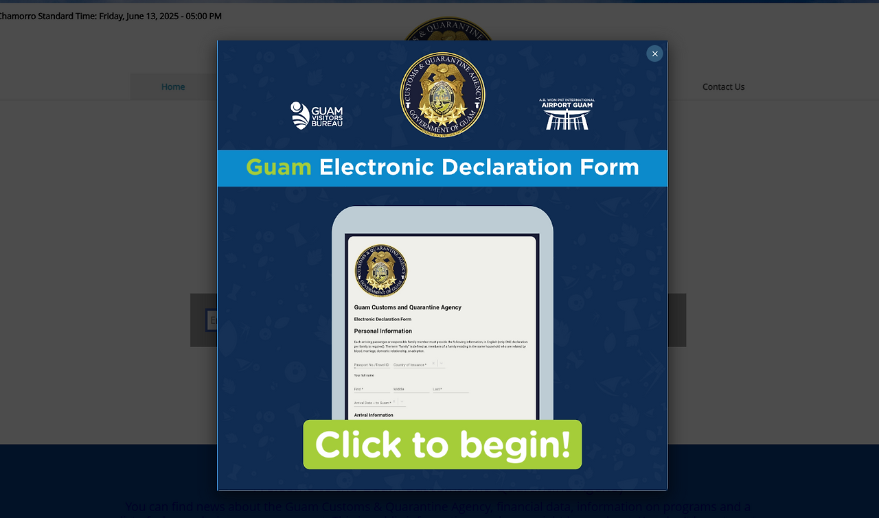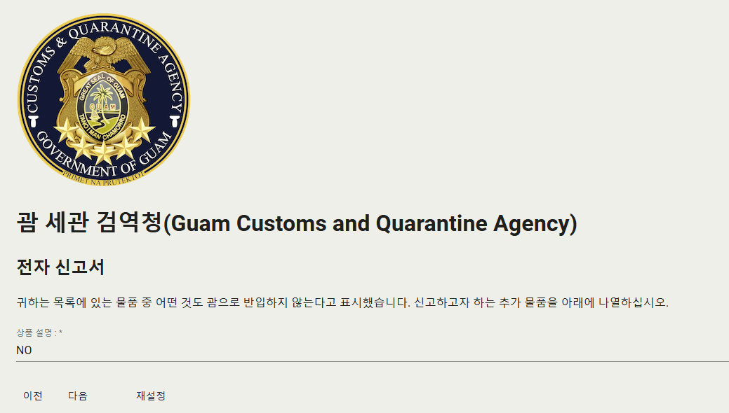 클릭하시면 괌 전자세관신로서 홈페이지로 들어가져요. 팝업이 뜰텐데