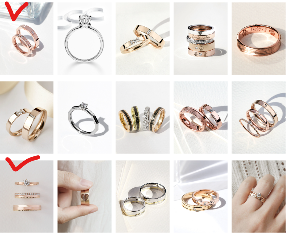 매니저님이 국내반지도 있으니 한번 보시라고 해서 4쌍을 더 골랐어요.